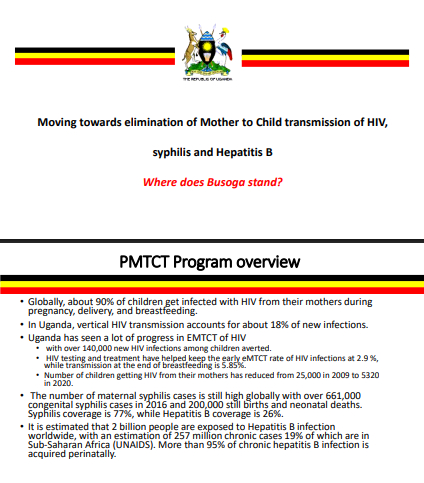 Prevention of Mother To Child Transmission of HIV, Syphilis and Hepatitis B -where does Busoga stand? by Dr. Linda Kisaakye